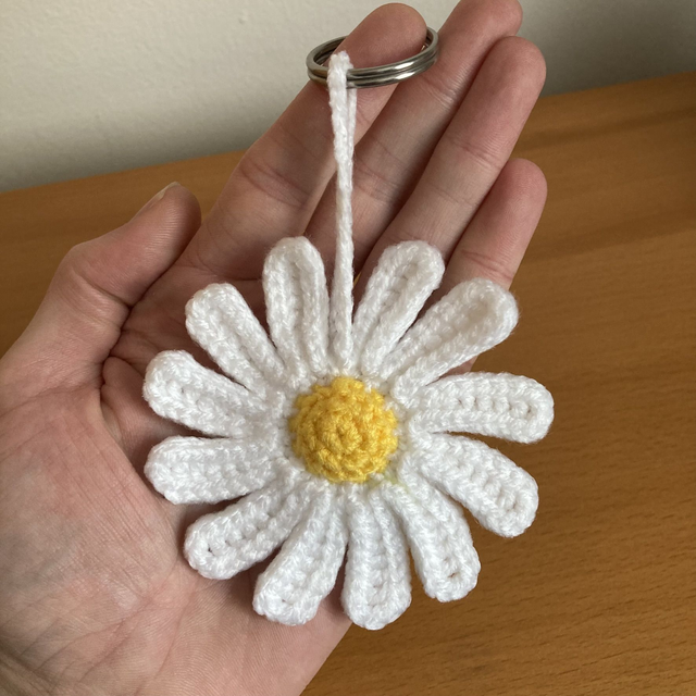 Porte-clés fleur marguerite au crochet
